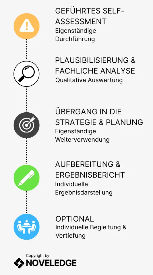 Sollte darüber hinaus individuelle Unterstützung erforderlich sein oder sollen mehrere Prozesse analysiert werden, ist dies im Rahmen eines individuell abgestimmten Angebots möglich.