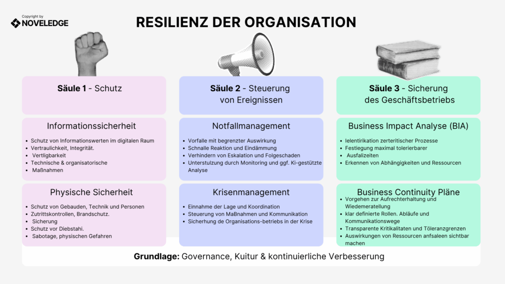 Die drei Säulen – SchutzSteuerung von Ereignissen und Sicherung des Geschäftsbetriebs – machen deutlich: